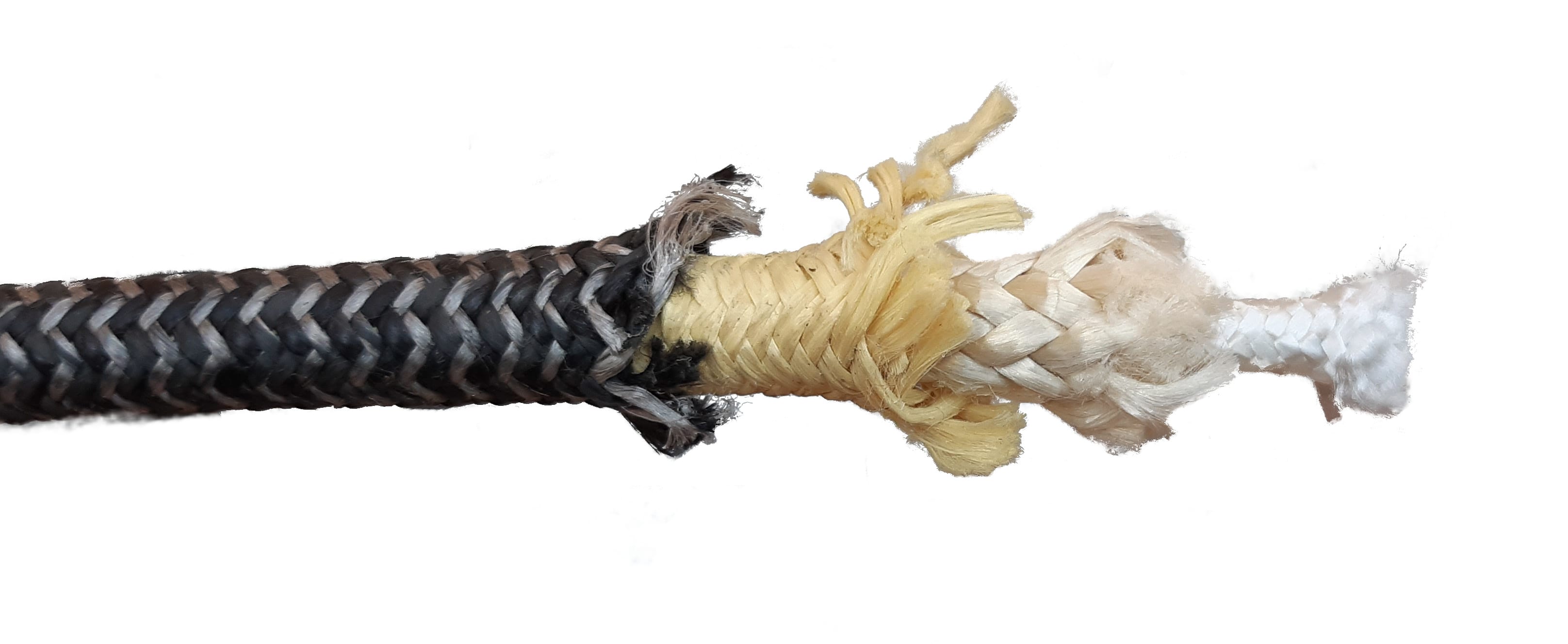 - Kevlar - włókno aramidowe trzykrotnie wytrzymalsze od włókien poliamidowych i poliestrowych. Ma wysoką odporność na temperaturę, bardzo małe wydłużenie przy zerwaniu (4-5%) oraz niewielkie pełzanie (wydłużanie przy długotrwałym działaniu siły statycznej). Niestety bardzo podatne na promienie UV (po 3-4 miesiącach na słońcu traci około 50% swojej wytrzymałości) i wrażliwe na załamania (węzeł może zmniejszyć wytrzymałość o 60%, potrzebne duże bloki).