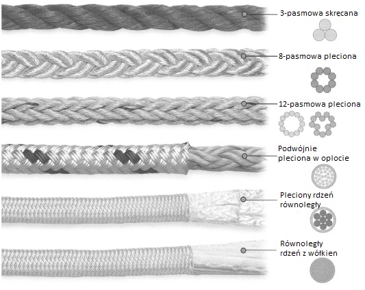 Rys. 3 Przykłady konstrukcji lin