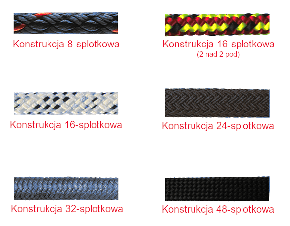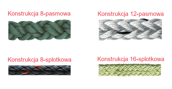 - Lina 8-splotkowa (8-plait) – liny tej konstrukcji są gruboziarniste, produkowane w dużych średnicach.