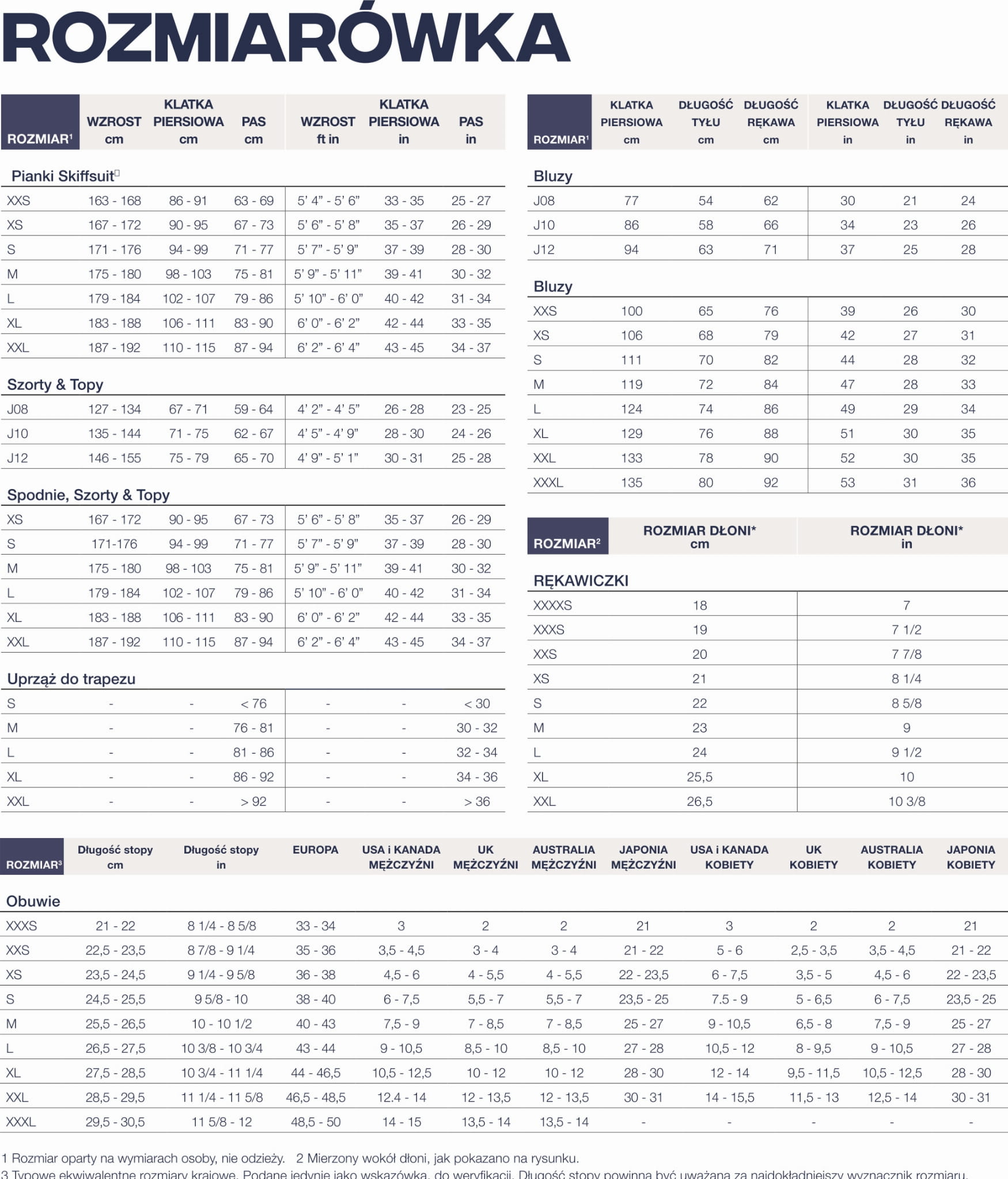 Dostępne Rozmiary