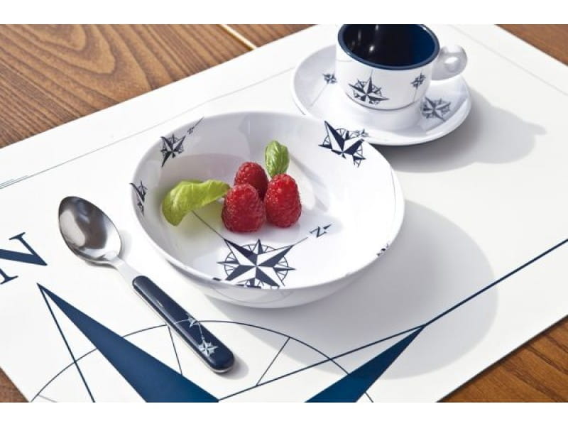 Naczynia żeglarskie opatrzone są w klasyczny wzór róży wiatrów w kolorze granatu i bieli.