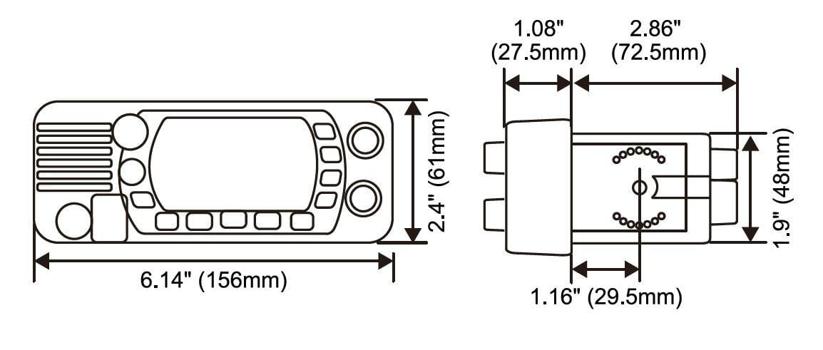 - Wysokiej klasy niewielkich rozmiarów radiotelefon morski VHF (156 x 61 x 100 mm),