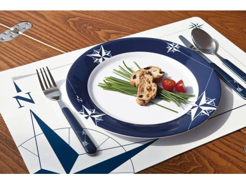 Naczynia żeglarskie opatrzone są w klasyczny wzór róży wiatrów w kolorze granatu i bieli.