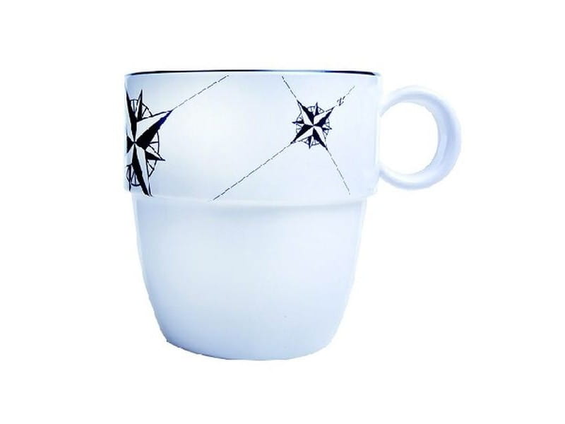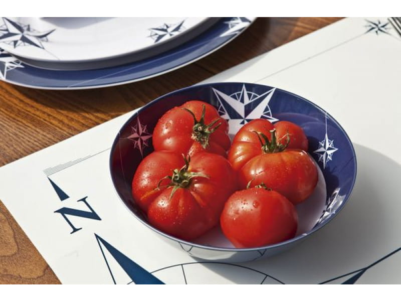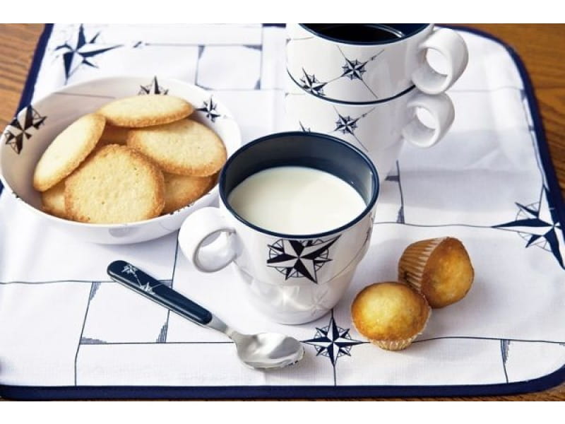 Naczynia żeglarskie opatrzone są w klasyczny wzór róży wiatrów w kolorze granatu i bieli.