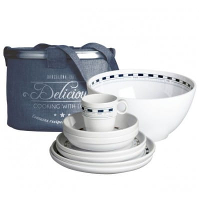 4 x talerz płaski Ø 25 cm (kod: 17001)4 x talerz głęboki Ø 18 cm (kod: 17002)4 x talerz deserowy Ø 21 cm (kod: 17003)4 x kubek (kod: 17004)1 x praktyczny kosz (kod: 62021)Zestaw zapakowany jest w praktyczny kosz (Ø30cm x H25cm), który może posłużyć do przechowywania naczyń, lin, butów lub innych akcesoriów żeglarskich.
